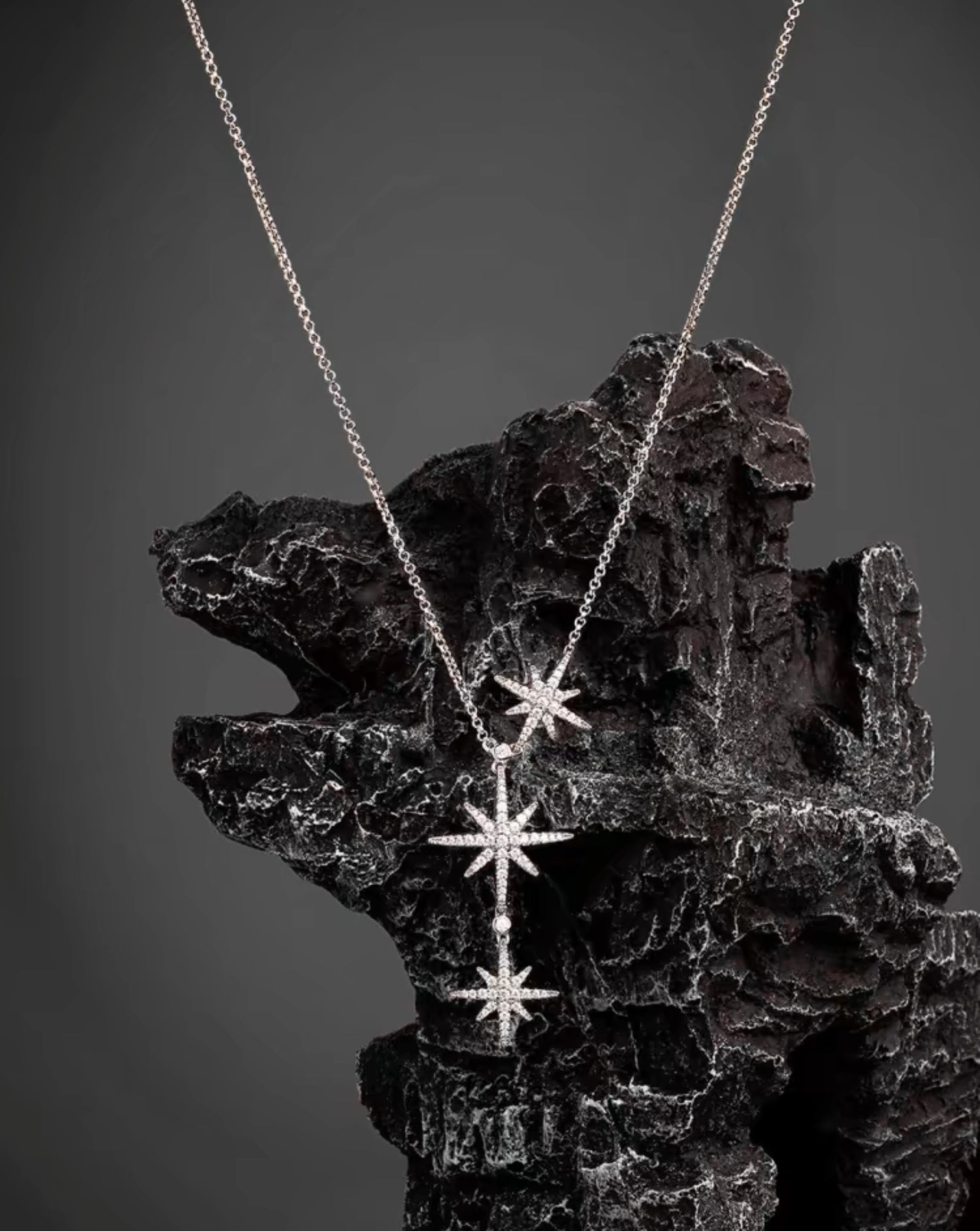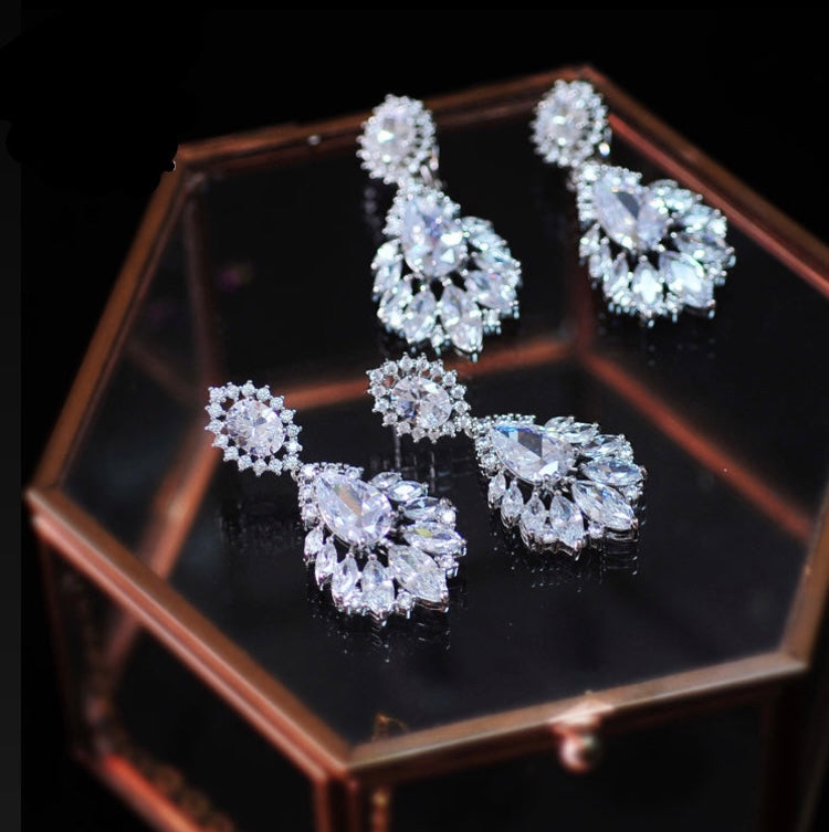 طقم عقد وحلق مرصعة بأحجار الزركون الشبيه بالألماس ومطلي بالذهب الأبيض A11