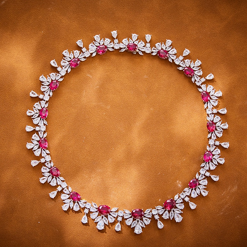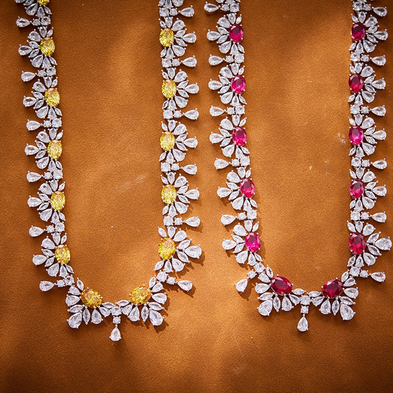 مادة القلادة: مرصعة بأحجار كريمة مختلطةالمحيط: 21 سم (شامل)-50 سم (شامل)مادة السلسلة: سبيكة/مطلية بالفضة/مطلية بالذهبالنمط: نباتات وزهورتصنيف الألوان: أحمر، أصفر